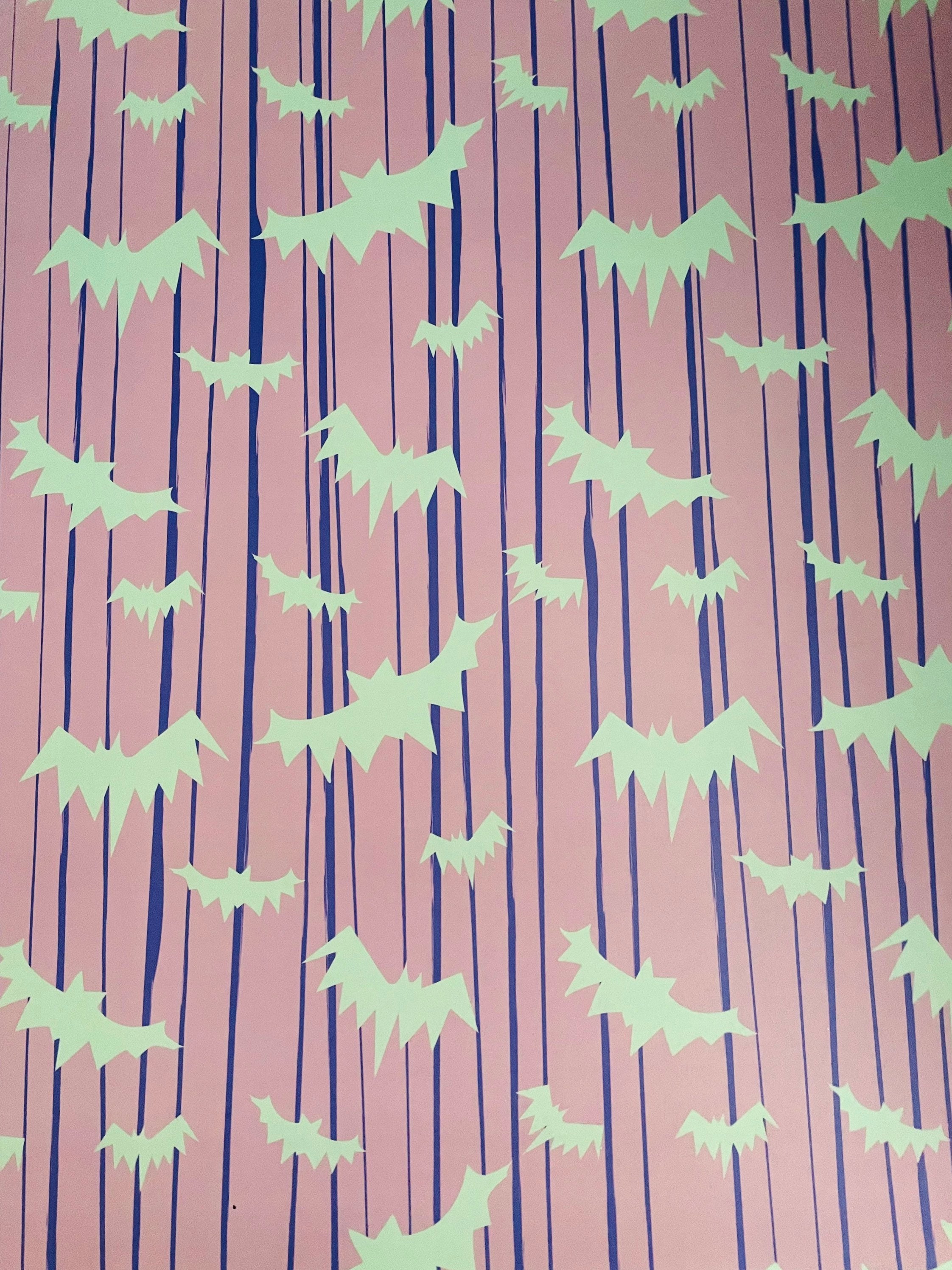 When two holidays collide! A perfect combination of Halloween and Springtime! Our mint green bats fly over a lavender background with violet stripes! This print is one of our most popular so we try to offer it in as many colors as we can! Don't forget to check out the original green Bat's crazy or the Halloween Edition in festive orange!