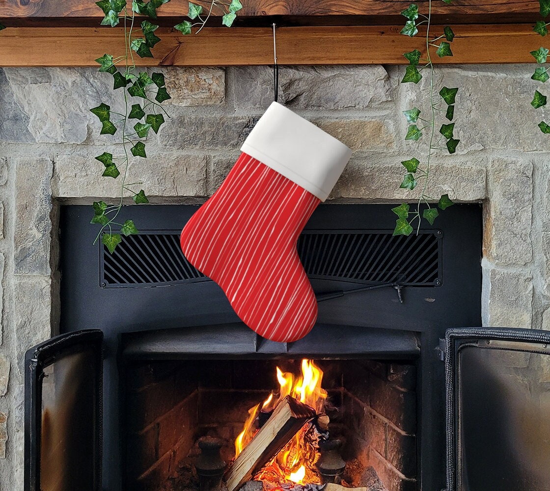 The red & white stripes are printed on soft velveteen fabric with rich and bright colors! The fold over cuff is 4.5” wide and a solid white velveteen fabric. These stockings are printed to order and will ship 2 weeks after ordering! Any other items (such as paper) ordered will ship separately!