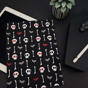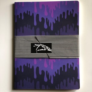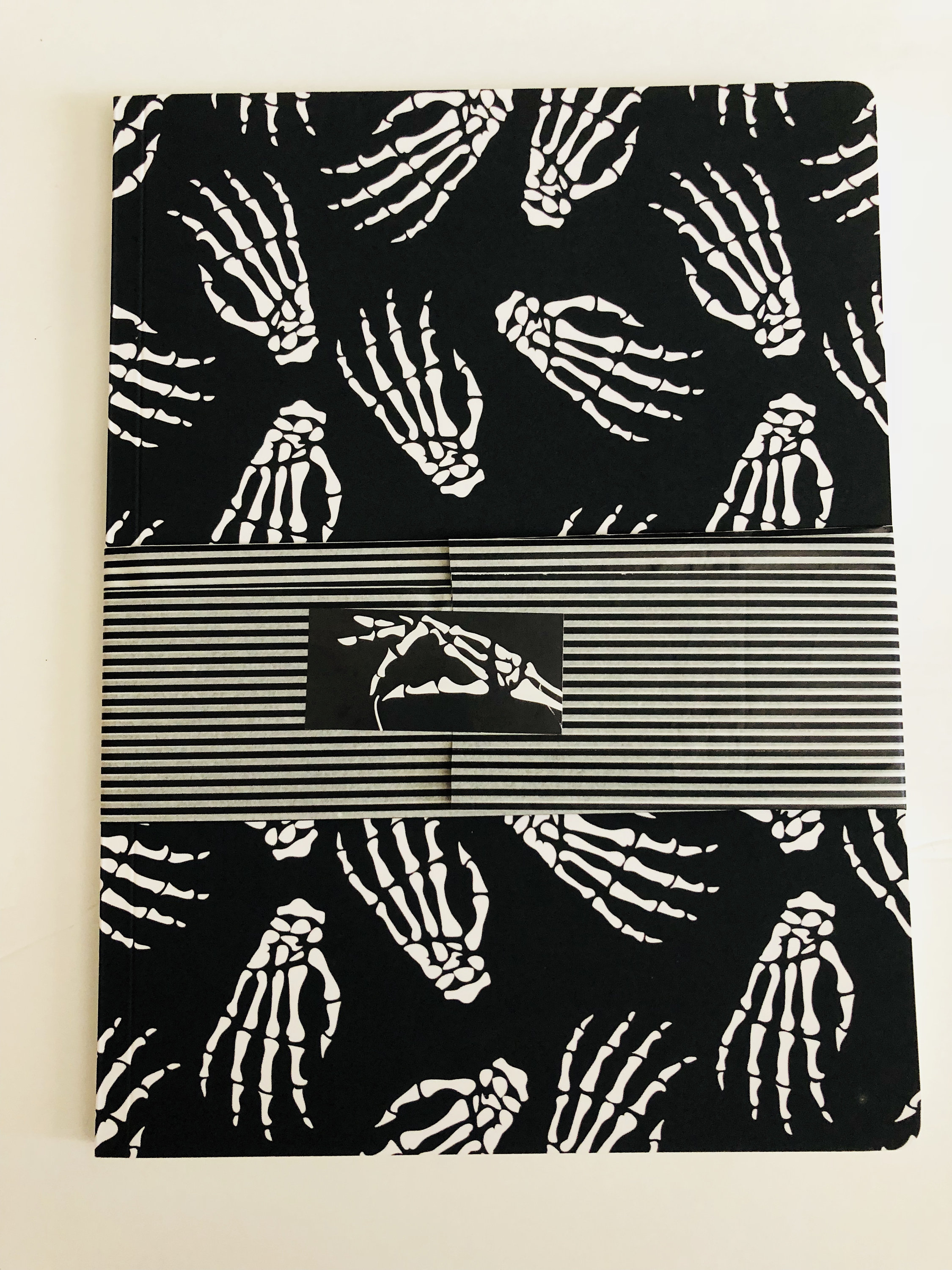 Hand-bound all-over printed notebook with our super spooky Idle Hands print! Each page is super creamy unlined white 70lb paper perfect for sketchy or notes. The cover is scuff resistant with an ultra matte finish. Please allow 1-2 weeks for production and delivery!