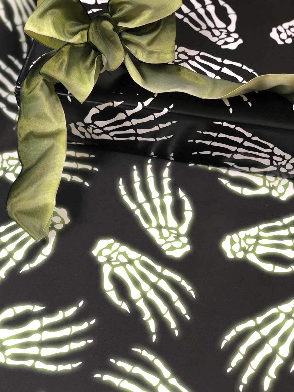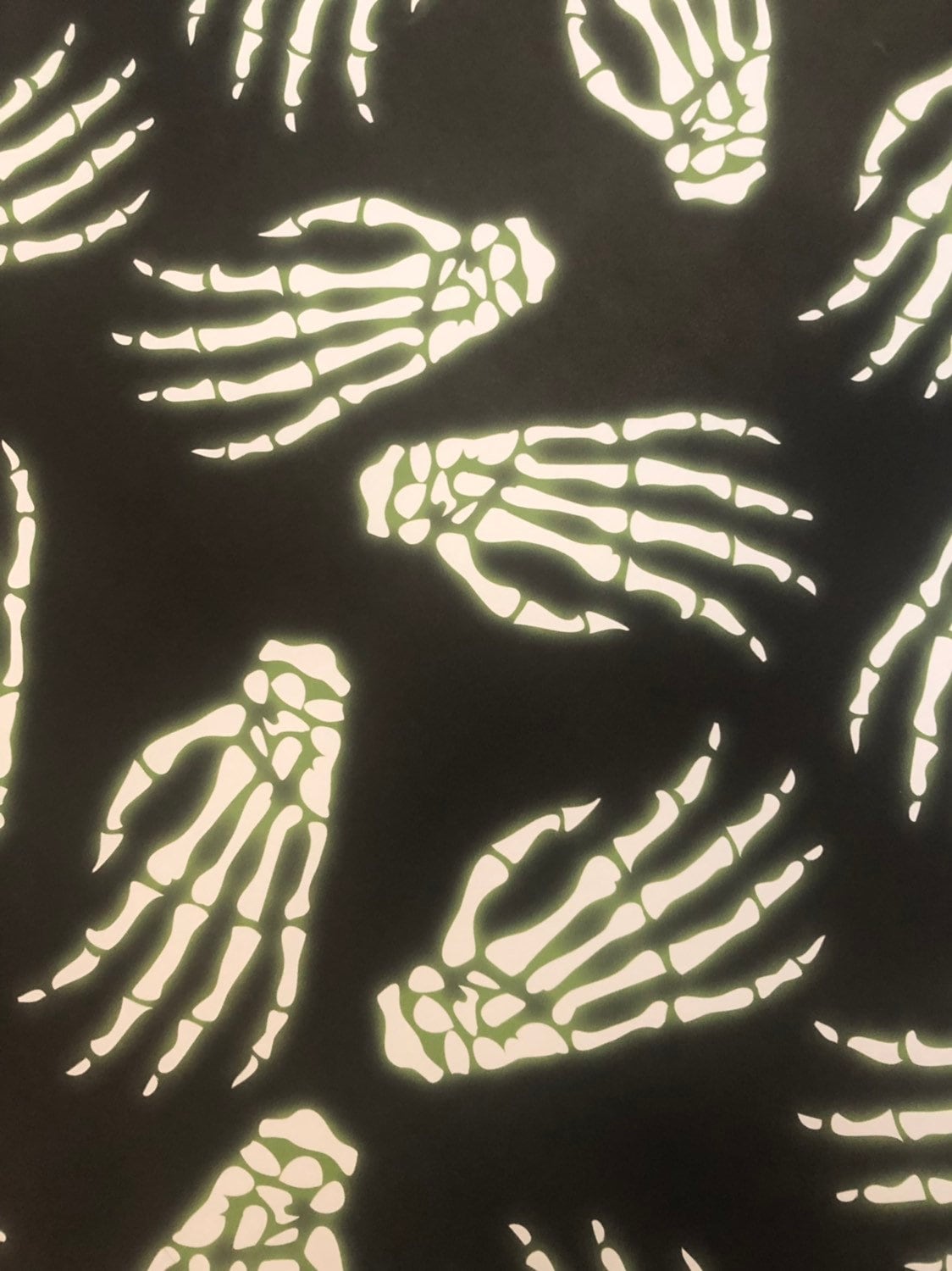 In honor of all things sci-fi, we added a little extra glow to classic Skelly Hands print! Each skeleton hand is now accompanied by a bright green glow for an intergalactic twist! We made this version of our Idle Hands in honor of Science Fiction Day and decided to sell it because our customers loved it so much! If you prefer the plain Idle Hands print (no glow) you can find that in our shop as well!